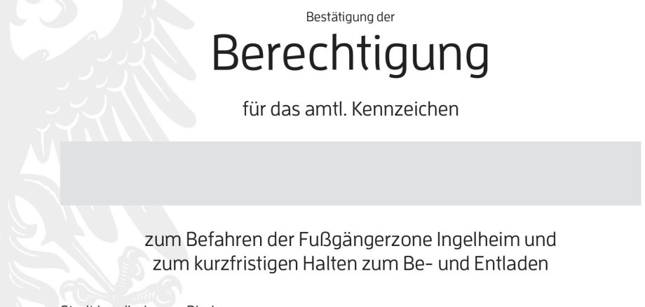 Das Ordnungsamt weist darauf hin, dass ein Berechtigungsschein nicht unbedingt erforderlich ist, um das Recht zu haben, die Fußgängerzone zu befahren, da das Befahren der Fußgängerzone zum Erreichen der privaten Parkplätze bereits durch die Beschilderung erlaubt ist.