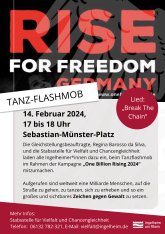 Am Freitag, 14. Februar 2025, um 17 Uhr lädt „One Billion Rising“ eine Milliarde Menschen dazu ein, auf die Straße zu gehen, zu tanzen und sich zu erheben, um das Ende der Gewalt an Frauen zu fordern. In Ingelheim findet um 17 Uhr ein Tanz-Flashmob auf dem Sebastian-Münster-Platz statt.