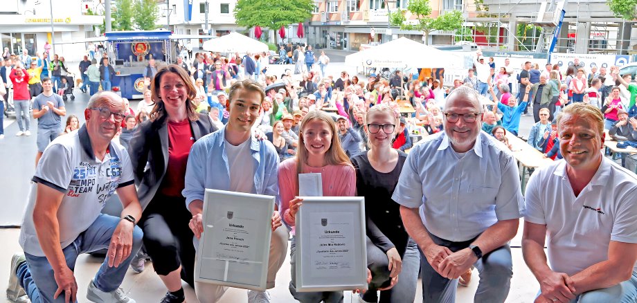 Die Ehrung der Ingelheimer Sportler*innen des Jahres 2023 bekommt eine neue Bühne. Unter Regie des Stadtsportverbandes stand am Sonntag, 16. Juni, der Ingelheimer Sport im Mittelpunkt. Erstmalig wurden im Rahmen des Ingelheimer Halben, des Sporttages 2024 und des verkaufsoffenen Sonntages die Sportlerin, der Sportler sowie die Mannschaft des Jahres 2023 auf dem Sebastian-Münster-Platz geehrt. Neben der Ehrung verwandelte sich der Sebastian-Münster-Platz zu einem Sport-Treffpunkt. Zahlreiche Ingelheimer Sportvereine machten an verschiedenen Mitmach-Stationen Werbung für ihre Sportart und die ehrenamtliche Tätigkeit im Verein.