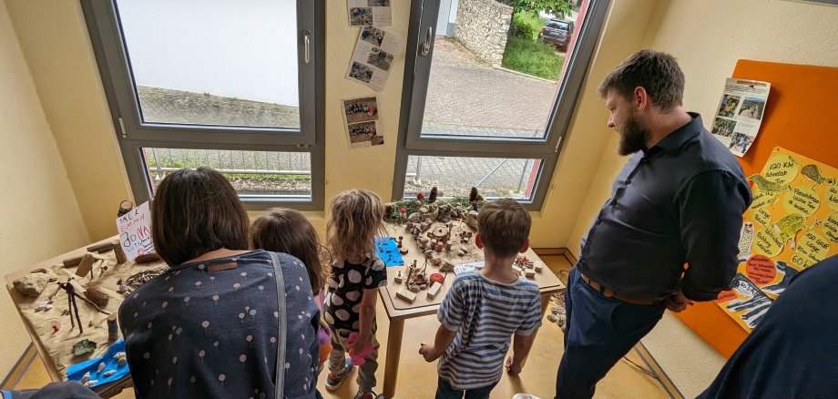 Vorschulkinder der Kita „An der Saalmühle“ führen Eltern durch ihre Ausstellung