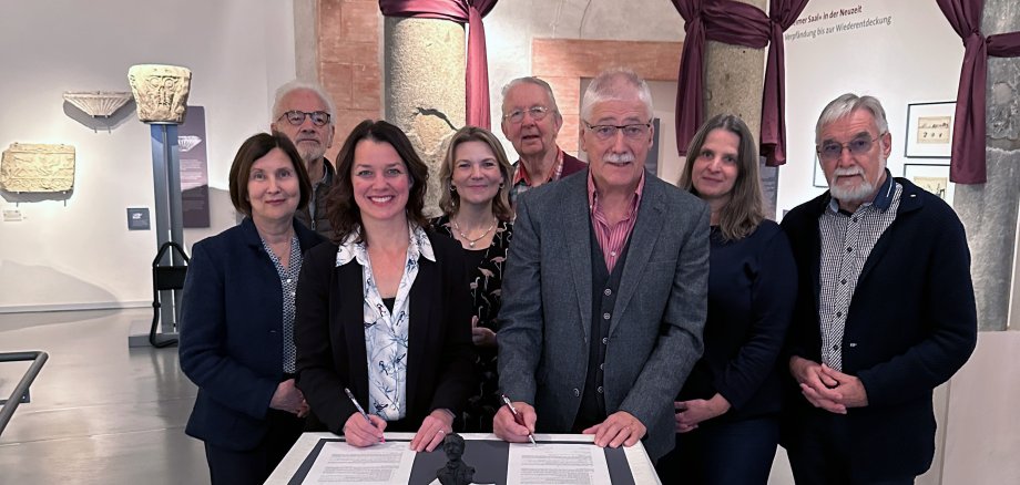 Am Dienstag, 26. November 2024, um 10 Uhr fand die offizielle Unterzeichnung des Vertrags zwischen der Stadt Ingelheim am Rhein und der Internationalen Multatuli-Gesellschaft sowie die Gründung des Multatuli-Archivs im Ingelheimer Museum statt. Neben Bürgermeisterin Eveline Breyer waren auch Museumsleiterin Dr. Ingeborg Domes, Dr. Nicole Nieraad-Schalke (Leiterin Bildung und Kommunikation/Sammlungsmanagement), Bernd Schenk (Multatuli-Gesellschaft), Miriam Maslowski (Multatuli-Archiv, Museum bei der Kaiserpfalz) sowie Hans-Dieter Steuber (Multatuli-Engagierter) anwesend.
