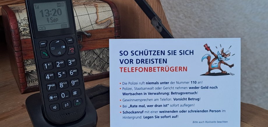 Dabei handelt es sich zum einen um die Broschüre „Ganoven die Rote Karte zeigen“ und zum anderen um einen praktischen Telefon-Aufsteller mit wichtigen Hinweisen, um nicht auf die immer raffinierter werdenden Maschen skrupelloser Telefon-Betrüger*innen hereinzufallen.