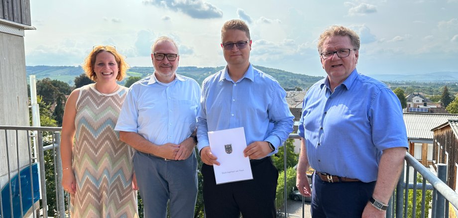 Im Rahmen einer kleinen Feierstunde überreichte Oberbürgermeister Ralf Claus neben einem kleinen Präsent die Dankesurkunde der Stadt Ingelheim. Stefan Rolletter, Leiter des Hauptamtes, Personalratsvorsitzende Nicole Gregori zählten ebenso zu den Gratulanten.