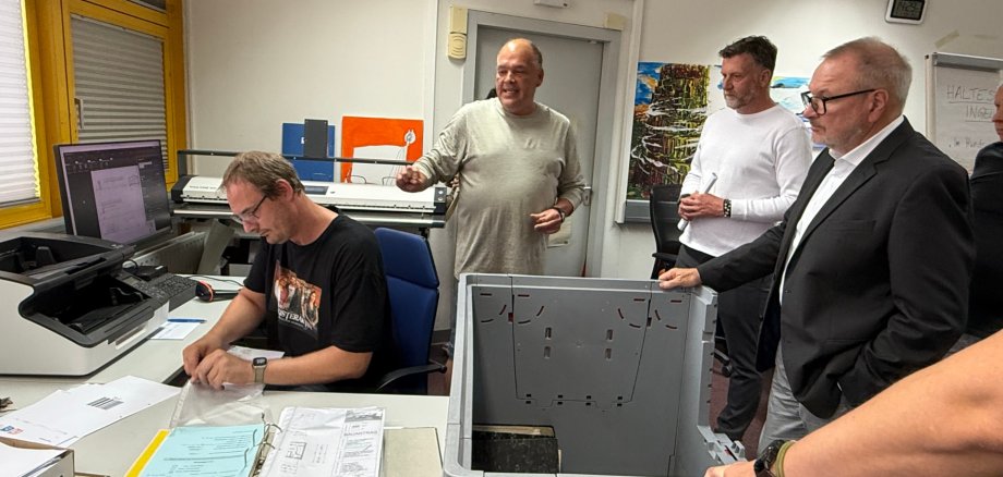 Eine weitere Ausschreibung zur Digitalisierung von Akten läuft derzeit. „Insgesamt kommen hier in etwa 1 Mio. Akten zusammen“, heißt es vom OB Claus weiter. Dieser zeigt sich sehr beeindruckt von den kleinteiligen Arbeitsschritten, die für die Digitalisierung der Baupläne nötig sind und die gleichzeitig auch ermöglichen, viele Beschäftigte der in.betrieb in die Arbeit zu integrieren. „Zudem können wir dadurch unseren hohen Qualitätsstandard gewährleisten,“ ergänzt Kurt Gohla, Gruppenleiter in der Digitalisierung.