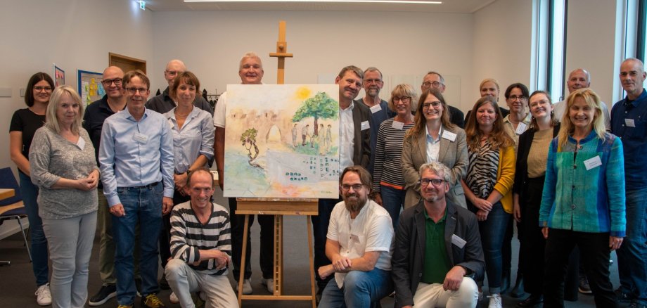 Organisiert durch die KlimaWerkstatt Ingelheim brachte die Veranstaltung Vertreter*innen aus Verwaltung, Wissenschaft, Zivilgesellschaft und Energiebranche zusammen, um gemeinsam die Herausforderung einer sicheren, bezahlbaren und klimaneutralen Wärmeversorgung zu erörtern und passende Handlungsoptionen zu visualisieren. Ziel war es, erste Visionen zu entwickeln und Grundlagen für zukünftige Szenarien zu erarbeiten – ein wichtiger Auftakt für den kommunalen Transformationsprozess. Die Visionierung wurde durch die kreative Handschrift der lokalen Künstlerin Sylvia Catharina Hess bildnerisch dargestellt. Das entstandene Werk wird zunächst in den Räumen der KlimaWerkstatt ausgestellt.