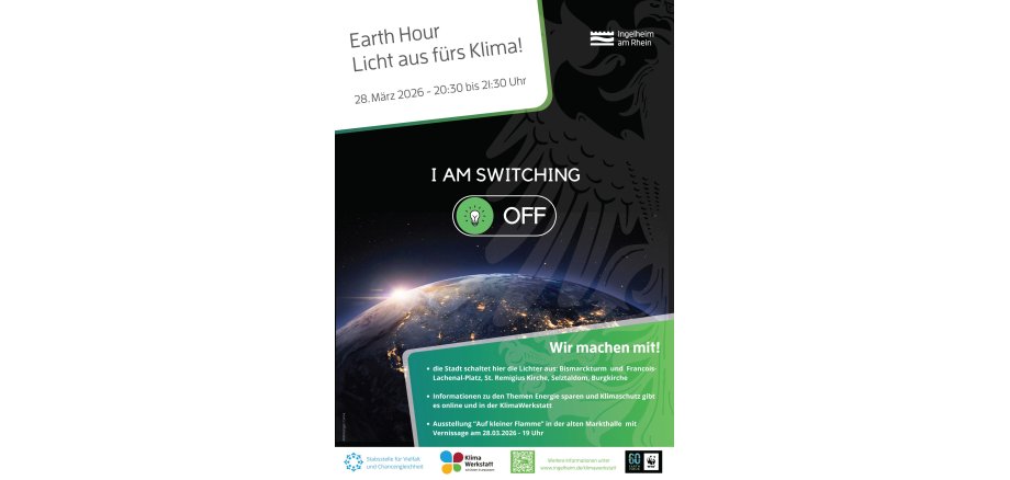 Mit ihrer Teilnahme an der Earth Hour möchte die Stadt Ingelheim gemeinsam mit Bürger*innen ein sichtbares Zeichen für Klimaschutz, nachhaltigen Energieverbrauch und globale Verantwortung setzen.