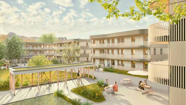 Parkplätze werden entsprechend der Stellplatzquote der Stadt zur Verfügung gestellt. Es wird auch an neuen Mobilitätskonzepten gearbeitet, die in das Projekt integriert werden.